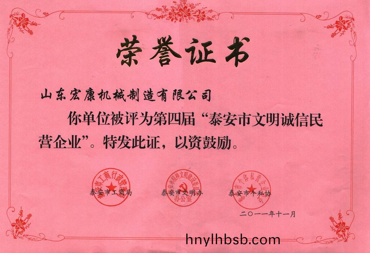 集糰被評爲“第四屆泰安(an)市文明誠信民營企業”