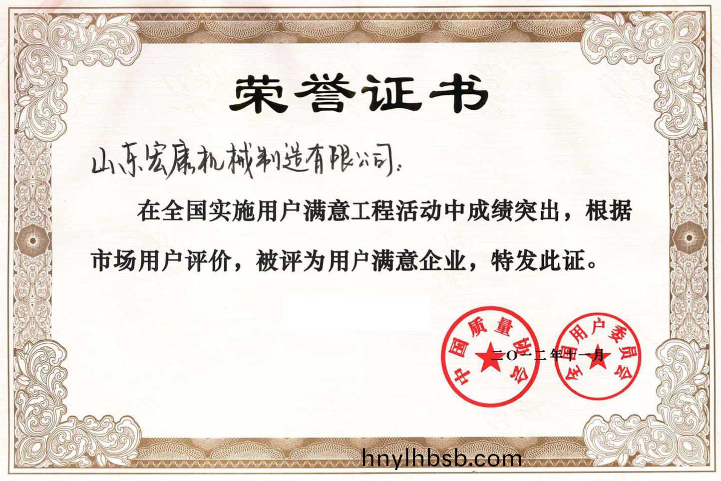 中國質量協會榮譽證書