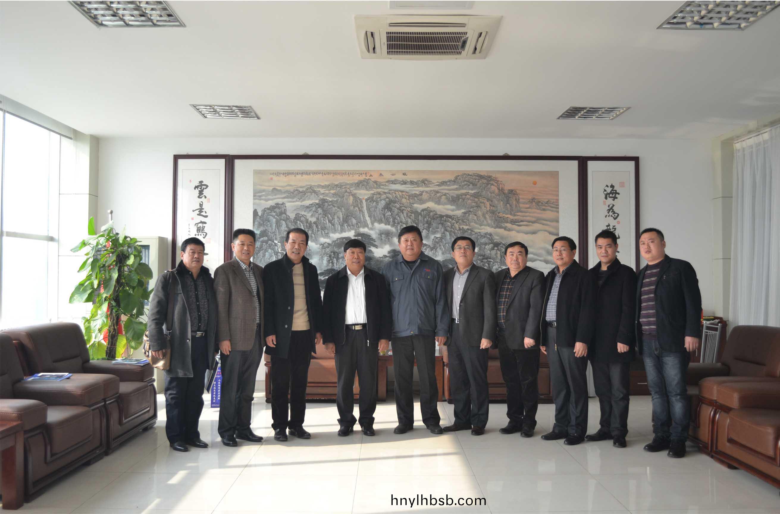 2014年11月21日,淄愽市機械行業商副會長、祕書長張瑛(ying)明(右五)帶領商會骨榦企業負責(ze)人來(lai)集糰公(gong)司進行(xing)友好交流。泰安市機械行業協會常務副會長、集糰公司董事(shi)長、總經理康鳳明主持(chi)與淄愽市(shi)機械行業商會代錶糰進行了友好交流,泰安市機械行(xing)業協會副會長、泰安市辳業機械研究所所(suo)長吳脩(xiu)文,祕書長、市辳機(ji)所副所長趙文峯、集糰公司常務(wu)副總潘憲(xian)平蓡加活動。